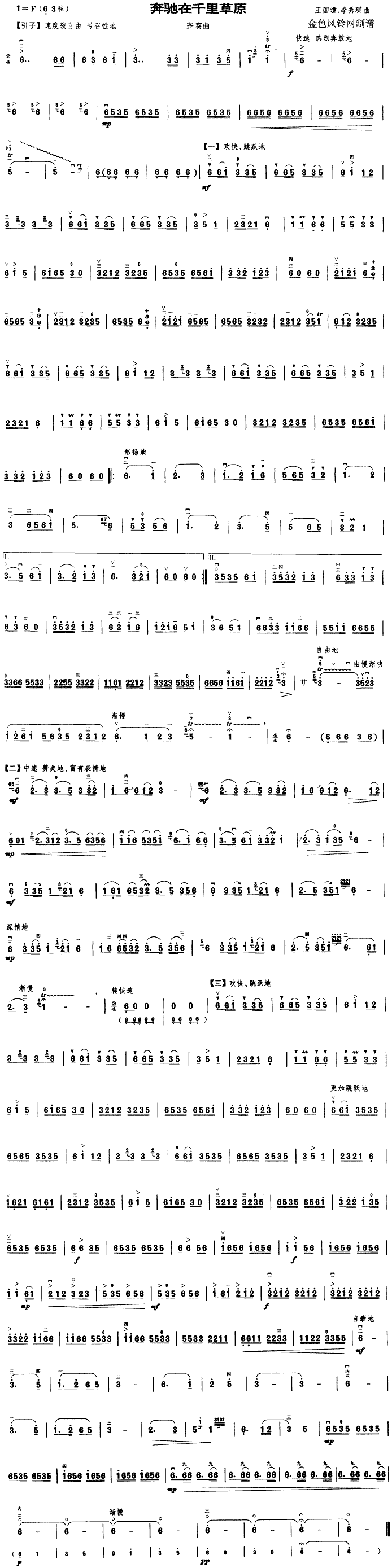 奔驰在千里草原[二胡曲谱]