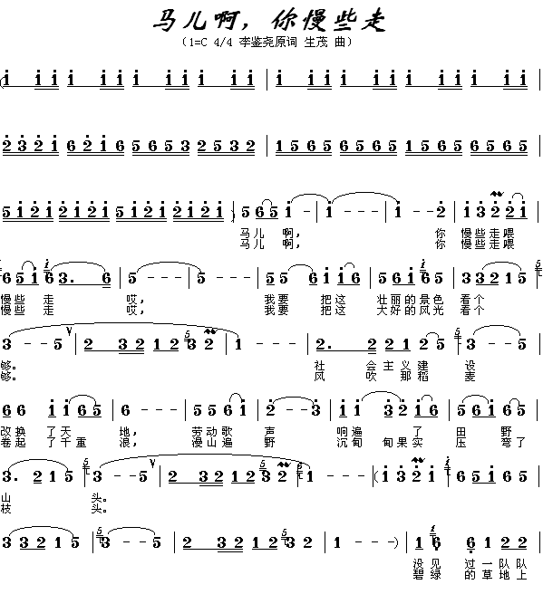 马儿啊你慢些走[简谱]