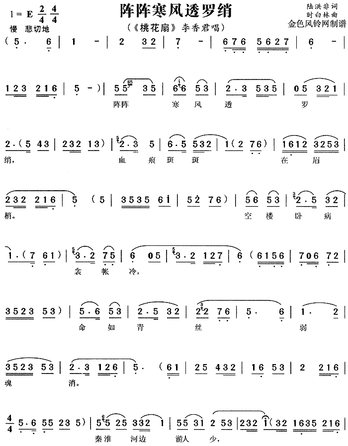 阵阵寒风透罗绡《桃花扇》[戏曲曲谱]