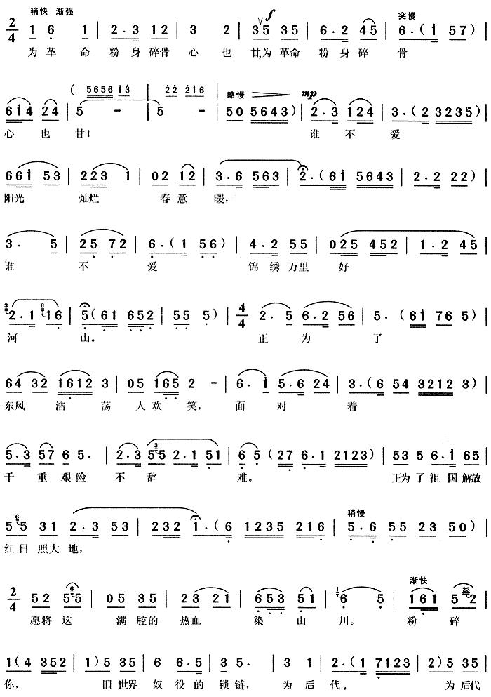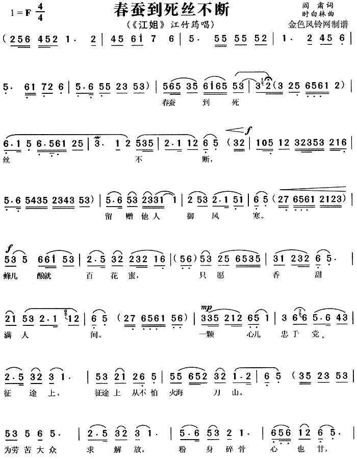 春蚕到死丝不断《江姐》[戏曲曲谱]