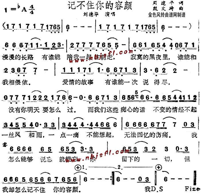 记不住你的容颜[简谱]