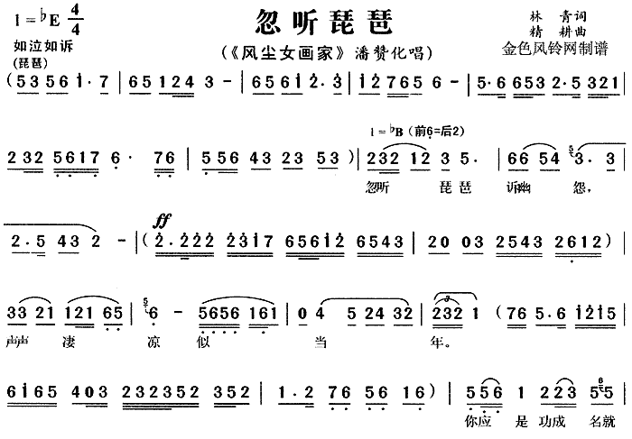 忽听琵琶《风尘女画家》[戏曲曲谱]