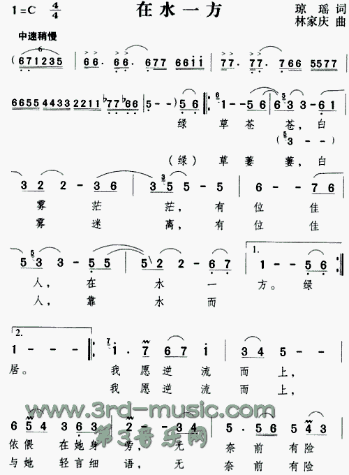 在水一方(同名电视剧主题歌)[简谱]