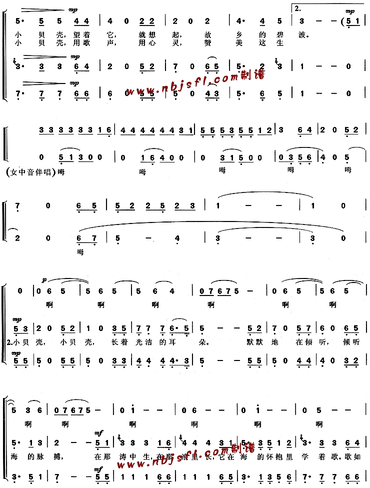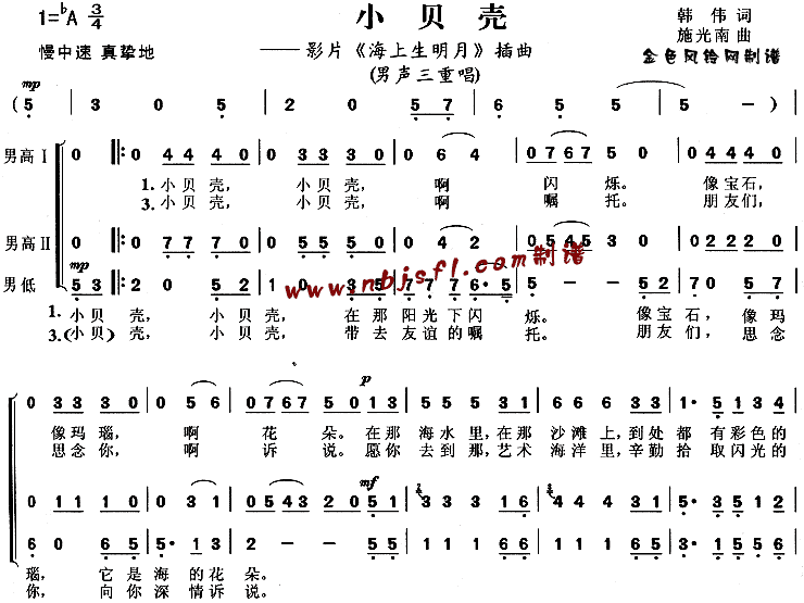小贝壳(《海上生明月》插曲)[合唱曲谱]