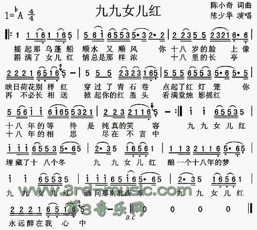 九九女儿红[简谱]