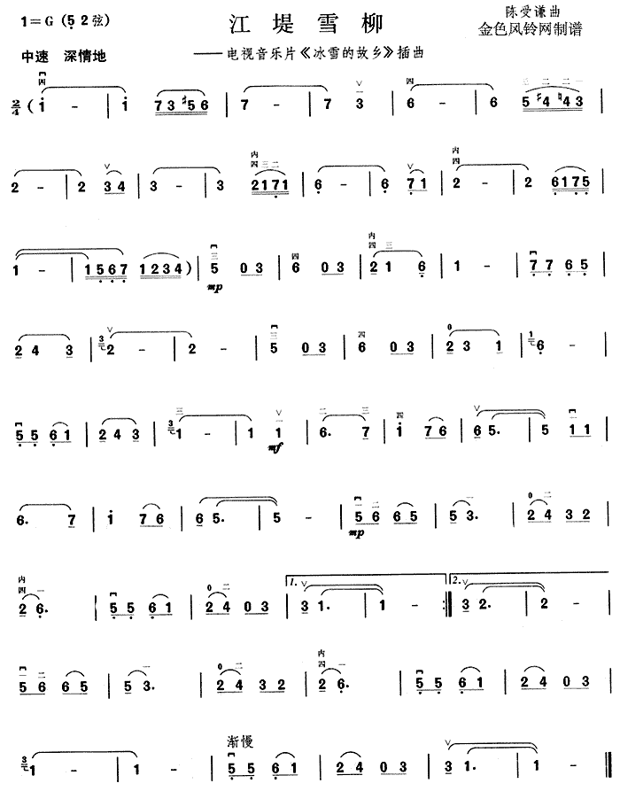 江堤雪柳(《冰雪的故乡》插曲)[二胡曲谱]