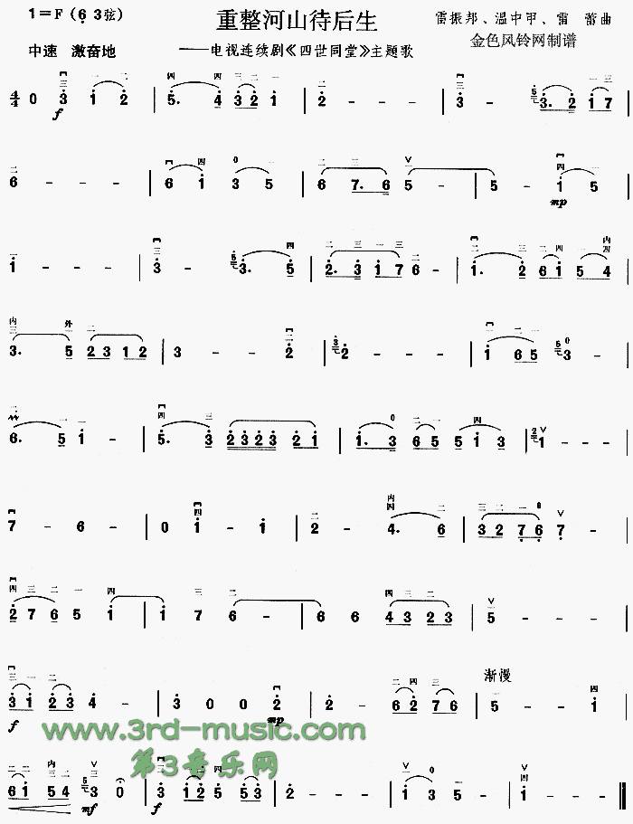 重整河山待后生(《四世同堂》主题歌)[二胡曲谱]