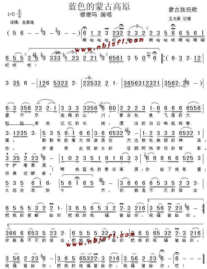 蓝色的蒙古高原(蒙古族民歌)[简谱]