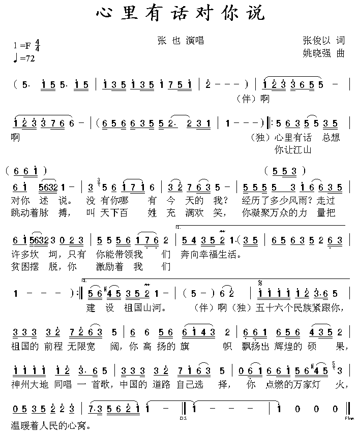 心里有话对你说[简谱]
