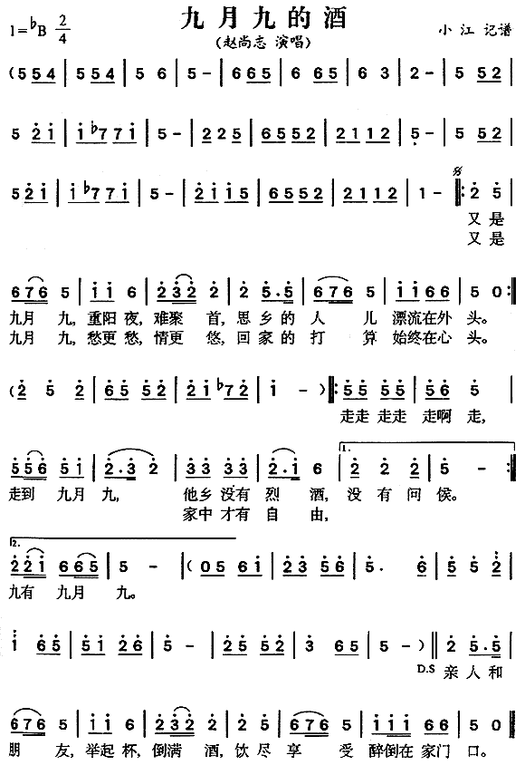 九月九的酒[合唱曲谱]