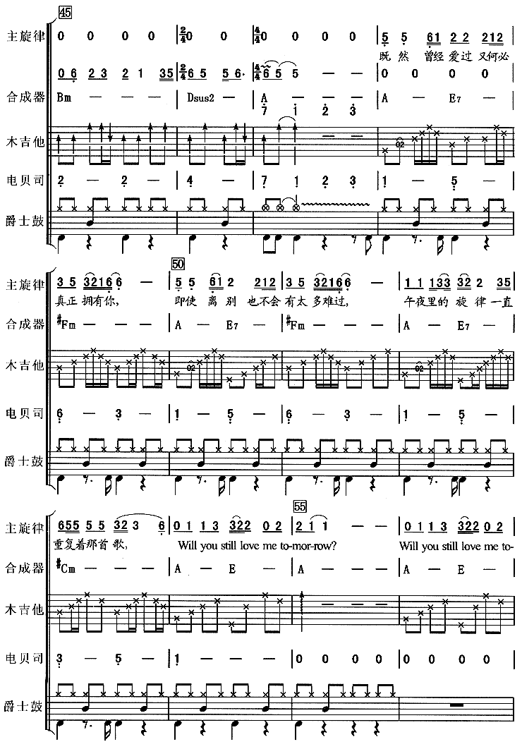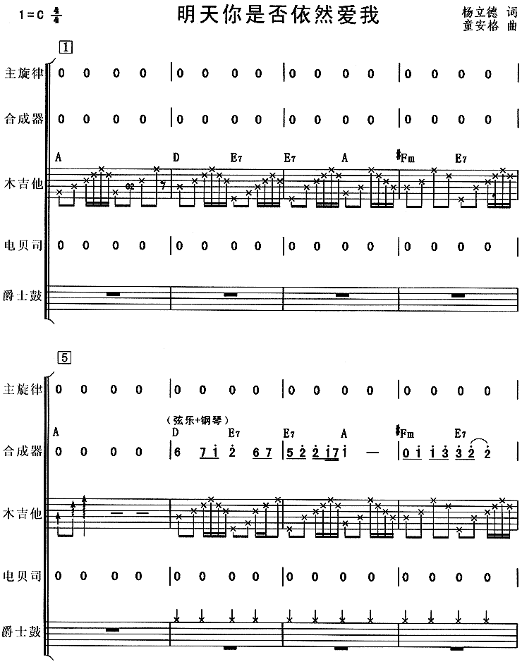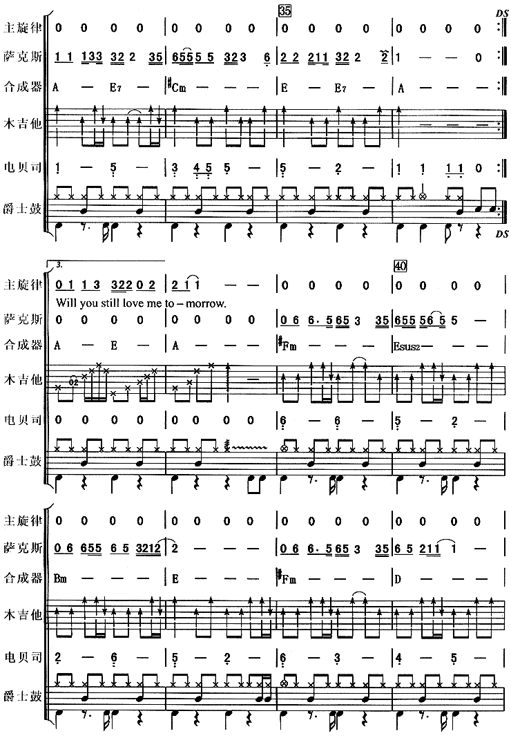 明天你是否依然爱我(吉特巴)[乐队总谱]
