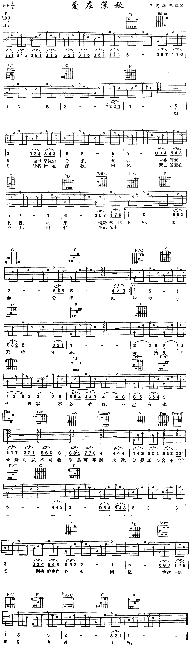 爱在深秋(粤语)[简谱]