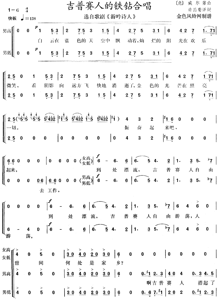 可爱的渔家姑娘(瑞士民歌)[合唱曲谱]