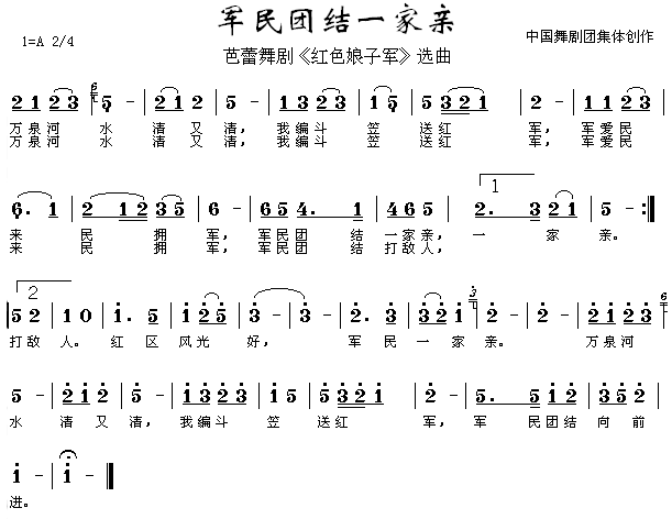 军民团结一家亲(《红色娘子军》选曲)[简谱]