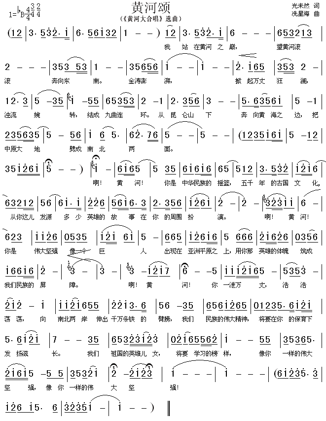 黄河颂(《黄河大合唱》选曲)[简谱]