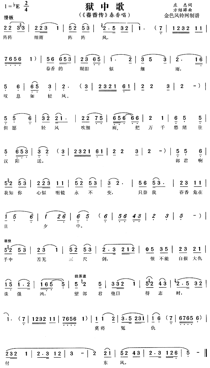 狱中歌《春香传》[戏曲曲谱]