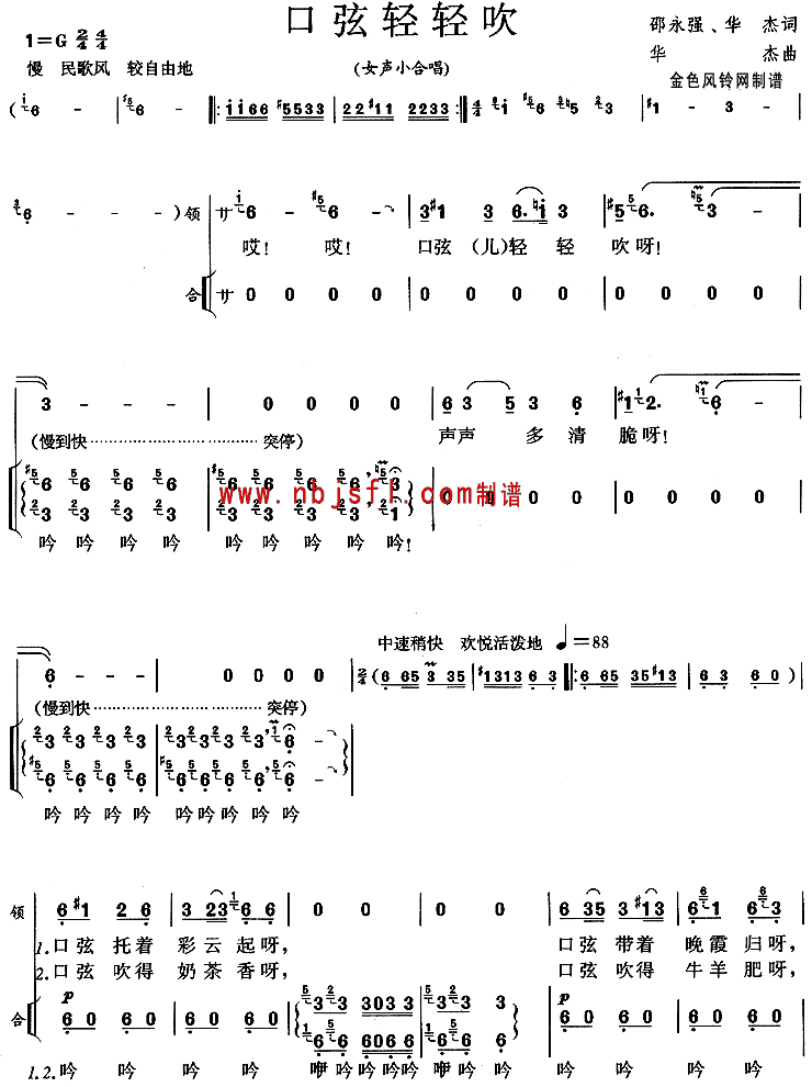 口弦轻轻吹[合唱曲谱]