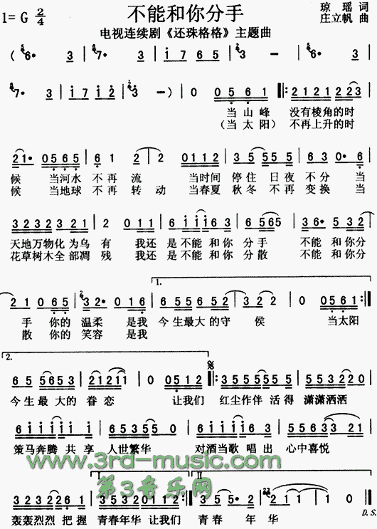 不能和你分手(《还珠格格》主题曲)[简谱]