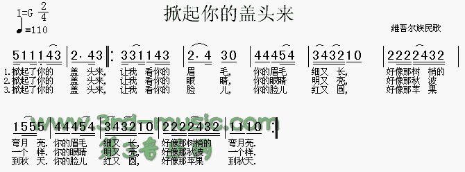 掀起你的盖头来(维吾尔族民歌)[简谱]