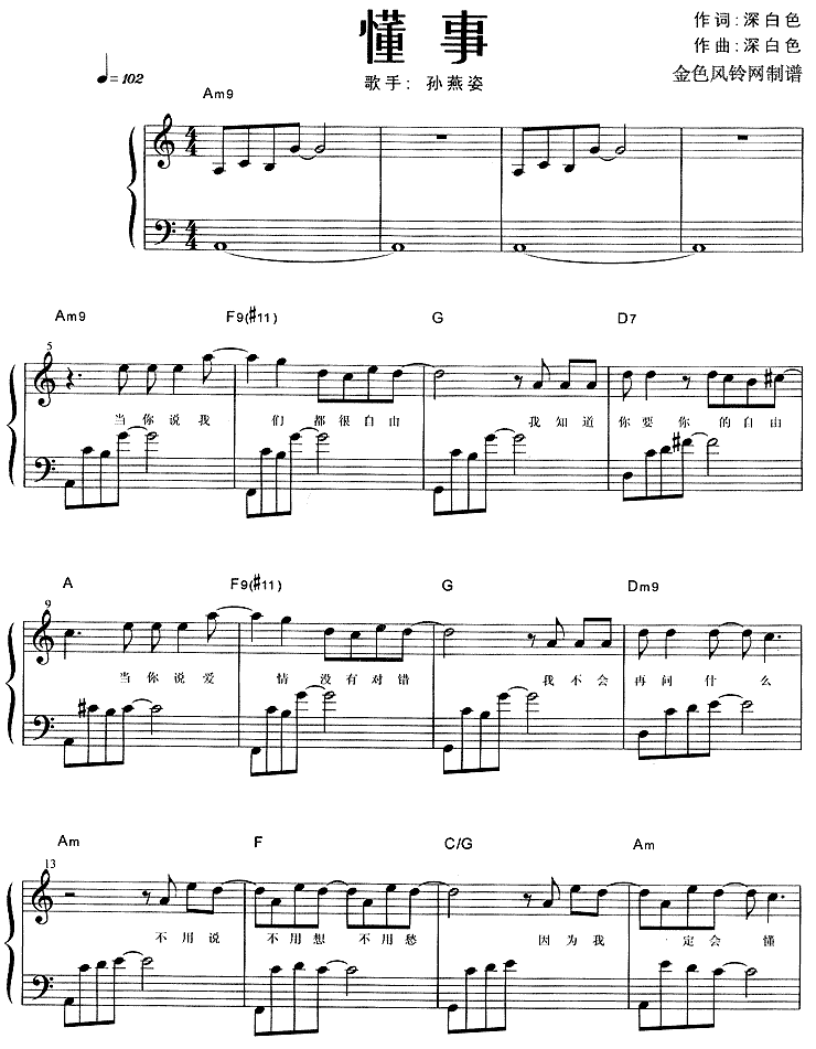 懂事[钢琴曲谱]