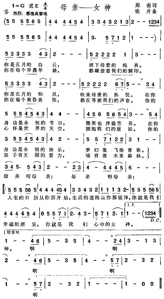 母亲——女神[简谱]