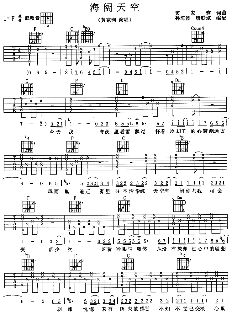 海阔天空(粤语)[简谱]