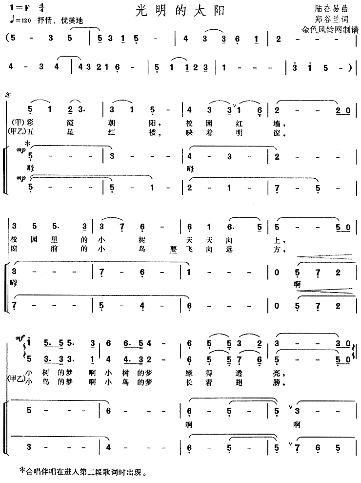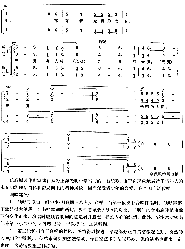 光明的太阳(上海光明中学校歌)[合唱曲谱]
