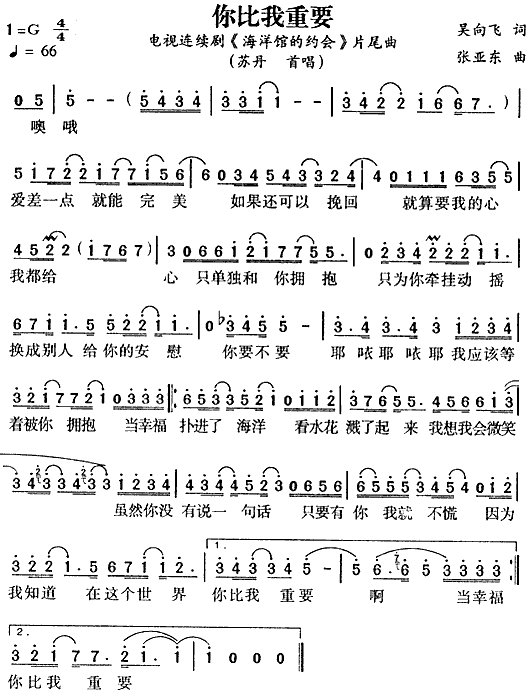你比我重要(《海洋馆的约会》片尾曲)[简谱]