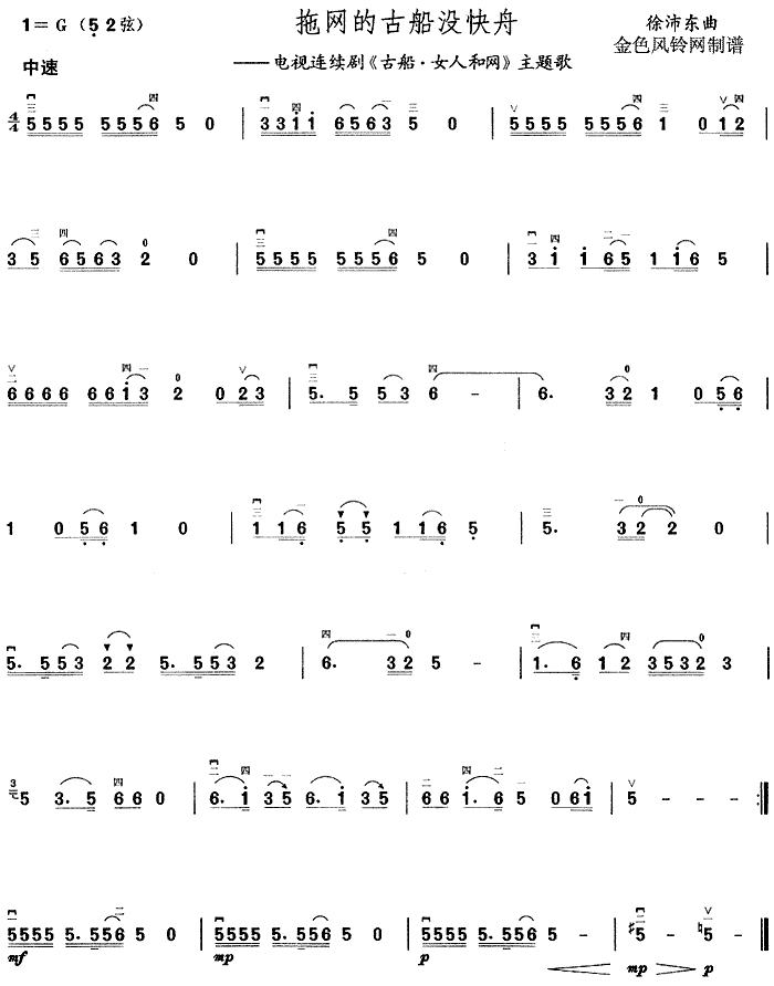 拖网的古船没快舟(《古船·女人和网》主题歌)[简谱]
