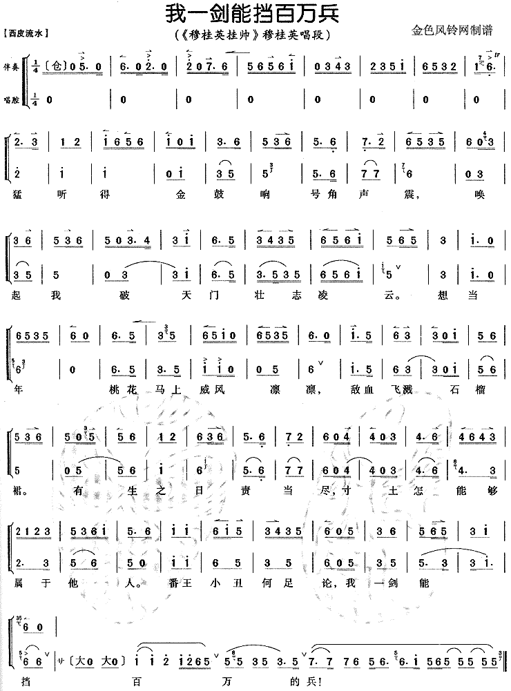 我一剑能挡百万兵《穆桂英挂帅》[戏曲曲谱]