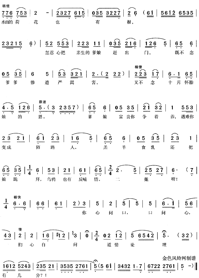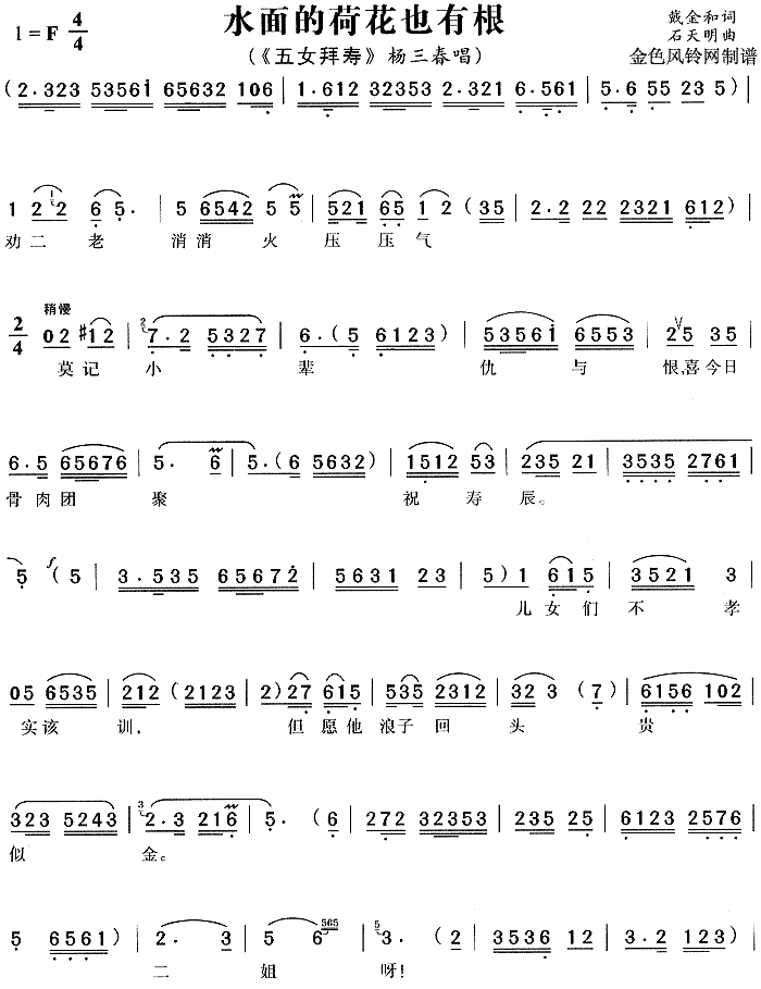 水面的荷花也有根《五女拜寿》[戏曲曲谱]