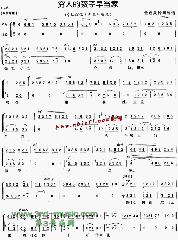 穷人的孩子早当家《红灯记》[戏曲曲谱]