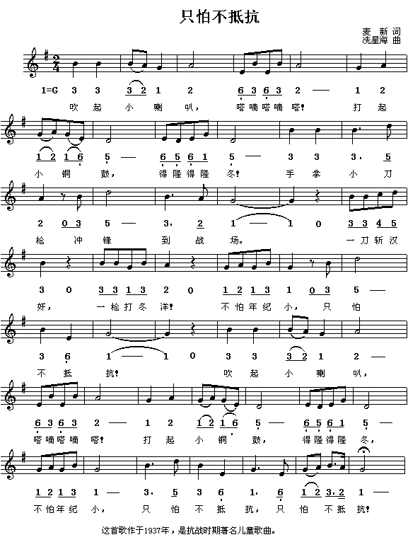 只怕不抵抗(简谱/五线谱对照)[简谱]
