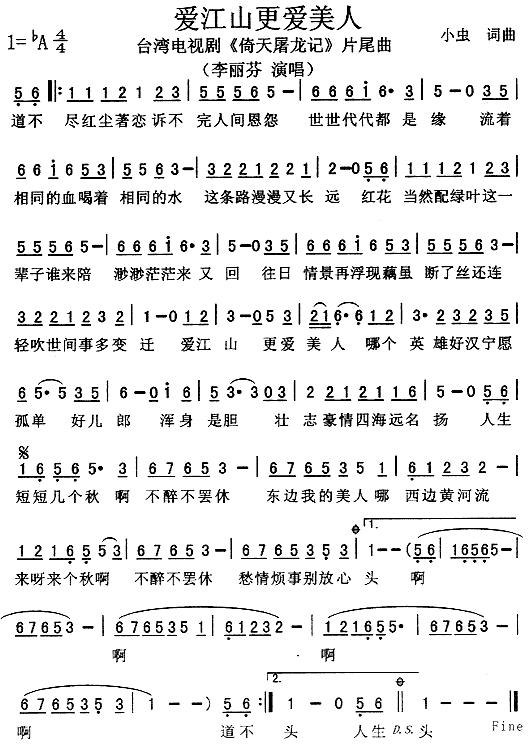 爱江山更爱美人(《倚天屠龙记》片尾曲)[简谱]
