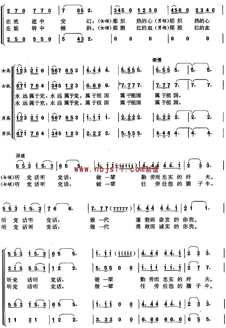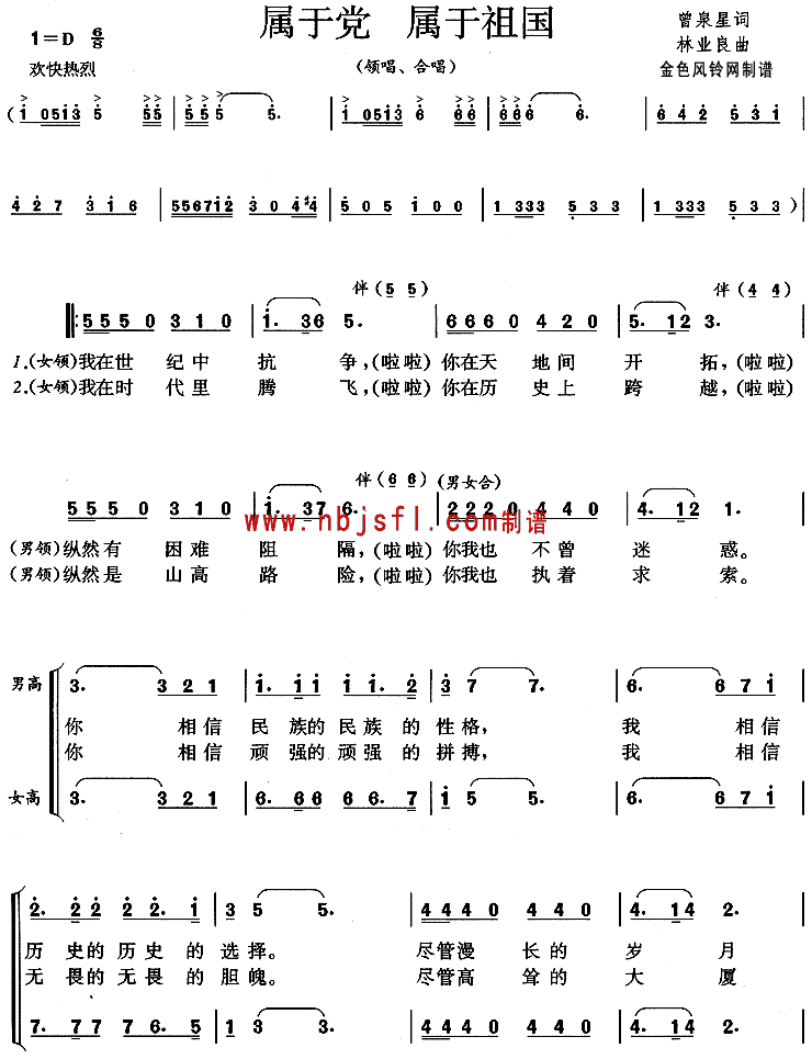 属于党属于祖国[合唱曲谱]