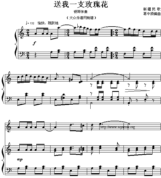 送我一支玫瑰花(新疆民歌)[钢琴曲谱]