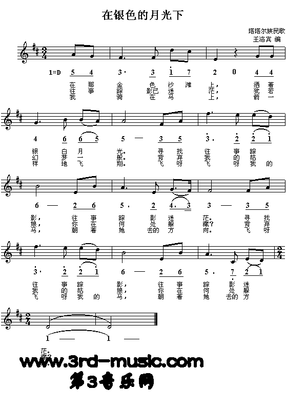 在银色的月光下(塔塔尔族民歌)[简谱]