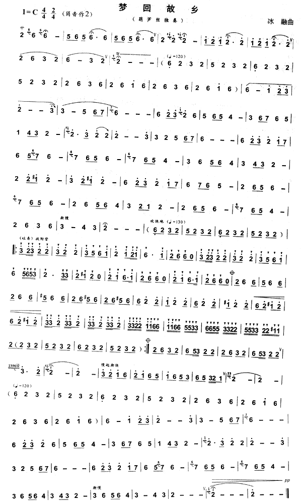 梦回故乡(葫芦丝谱)[笛萧曲谱]