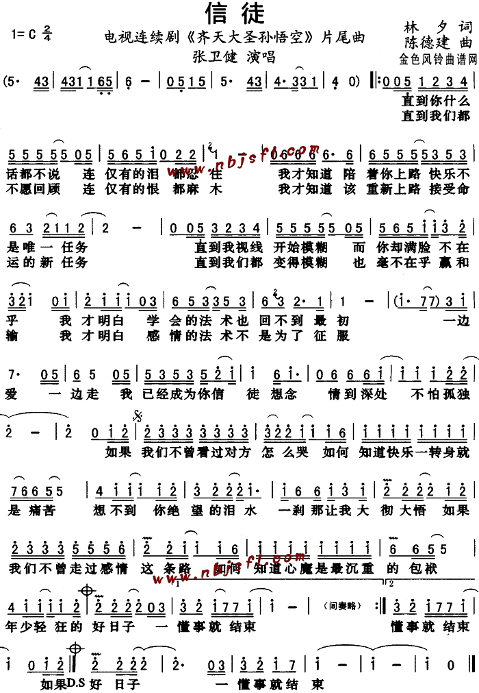 信徒(《齐天大圣孙悟空》片尾曲)[简谱]