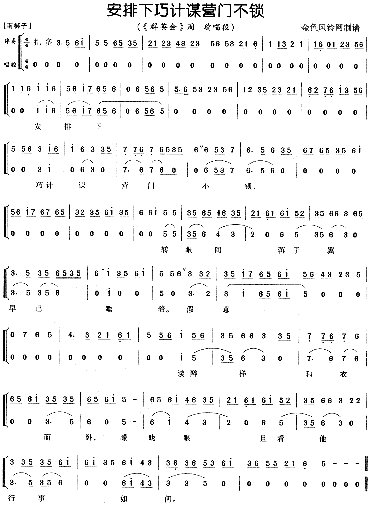安排下巧计谋营门不锁《群英会》[戏曲曲谱]