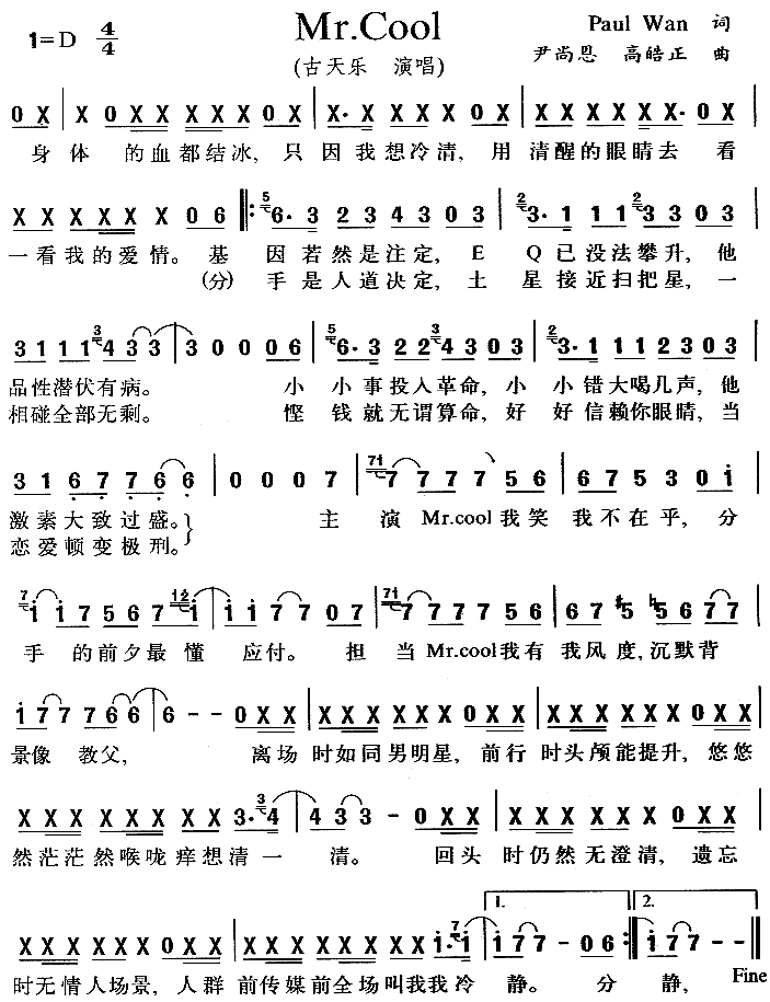 Mr.Cool[简谱]