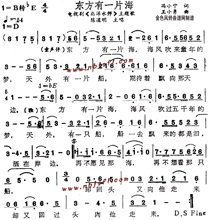 东方有一片海(《北洋水师》主题歌)[简谱]