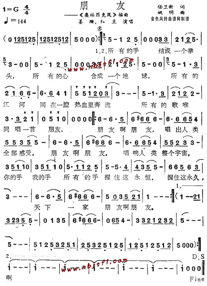 朋友(《奥林匹克风》插曲)[简谱]