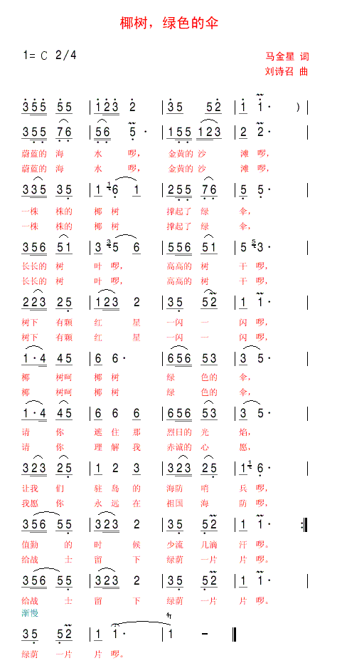 椰树绿色的伞[其他曲谱]