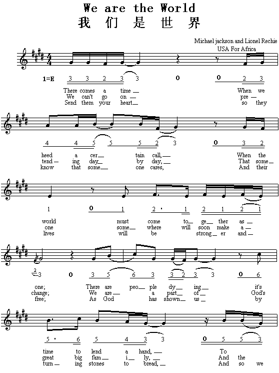 我们是世界(美、英文歌)[简谱]