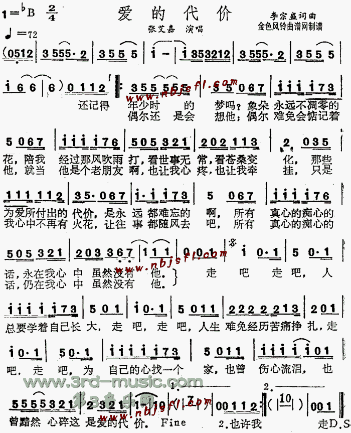 爱的代价[简谱]