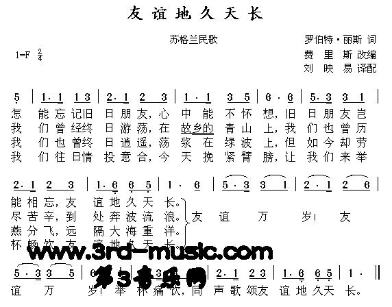 友谊地久天长(《魂断蓝桥》插曲、苏格兰民歌)[简谱]