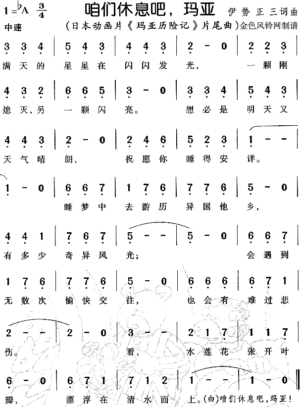 咱们休息吧玛亚(《玛亚历险记》片尾曲)[简谱]