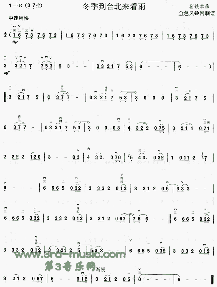 冬季到台北来看雨[二胡曲谱]