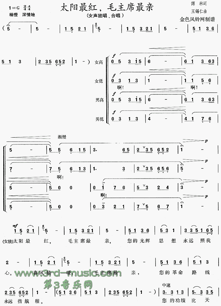 太阳最红毛主席最亲[合唱曲谱]